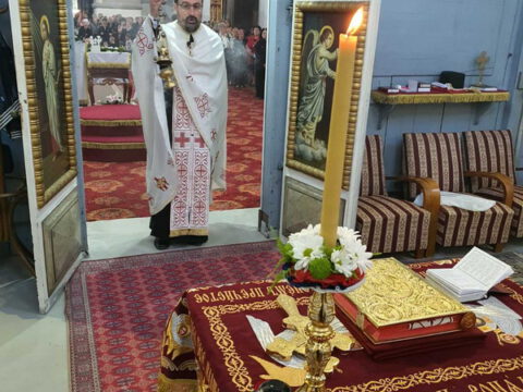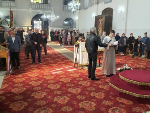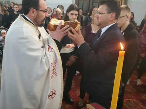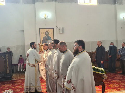 Славски колач је пререзан након вечерње службе, коју је служио протојереј Стевица Илић, уз саслужење протојереја Далибора Купусовића, протонамесника Бранислава Спасојева и презвитера Петра Николића.