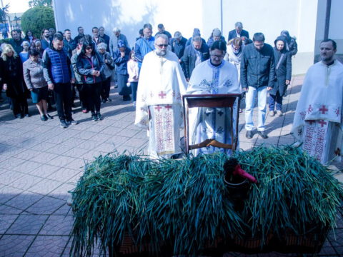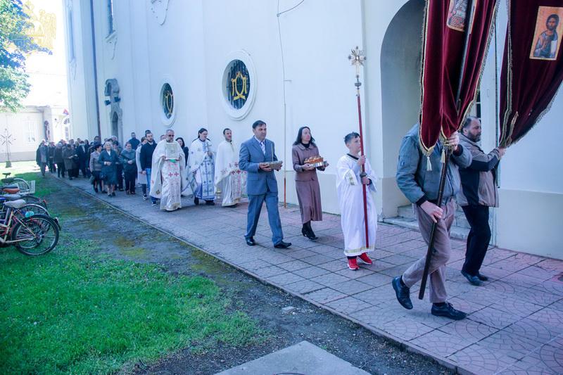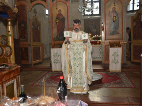 Светом Литургијом началствовао је надлежни парох, протопрезвитер Горан Артуков, који се сабраном народу обратио пригодном беседом. Овогодишњи кум био је г. Марко Мургашки са Ченеја. У продужетку Литургије учињен је трократни опход око Светотројичног храма, уз читање литијских молитава и благослов жита.