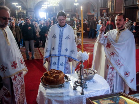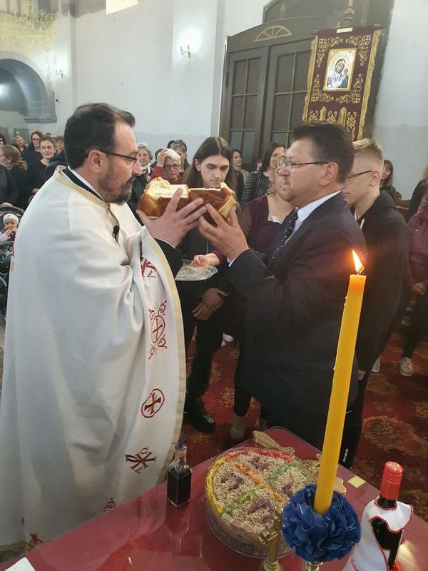 Славски колач је пререзан након вечерње службе, коју је служио протојереј Стевица Илић, уз саслужење протојереја Далибора Купусовића, протонамесника Бранислава Спасојева и презвитера Петра Николића.