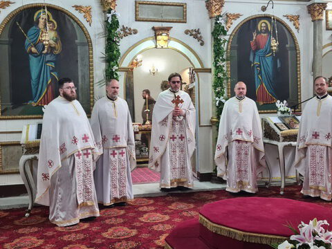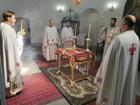 Свету Литургију служио је протојереј-ставрофор Радивој Панић, уз саслужење јереја Владимира Маркова, пароха у Каћу, јереја Даниела Кобиљског, надлежног пароха, и ђакона Јована Вачика.