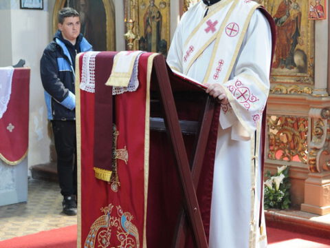 После одслуженог вечерњег богослужења, Његово Преосвештенство Епископ мохачки господин Исихије обратио се присутнима надахнутом беседом, говорећи о значају Васкрсења. На крају беседе, епископ Исихије је пренео благослов и поздрав Његовог Високопреосвештенства Епископа бачког господина др Иринеја упућен пароху и Црквеноопштинском управном одбору, а потом је свима заблагодарио на труду и залагању на обнови здања, честитајући притом заветну славу.