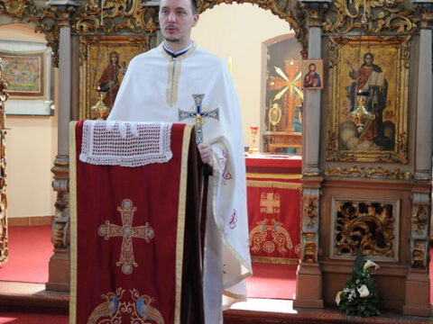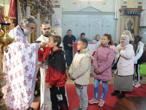 Свету Литургију служио је протојереј-ставрофор Радивој Панић, уз саслужење јереја Владимира Маркова, пароха у Каћу, јереја Даниела Кобиљског, надлежног пароха, и ђакона Јована Вачика.