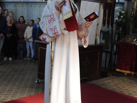 После одслуженог вечерњег богослужења, Његово Преосвештенство Епископ мохачки господин Исихије обратио се присутнима надахнутом беседом, говорећи о значају Васкрсења. На крају беседе, епископ Исихије је пренео благослов и поздрав Његовог Високопреосвештенства Епископа бачког господина др Иринеја упућен пароху и Црквеноопштинском управном одбору, а потом је свима заблагодарио на труду и залагању на обнови здања, честитајући притом заветну славу.