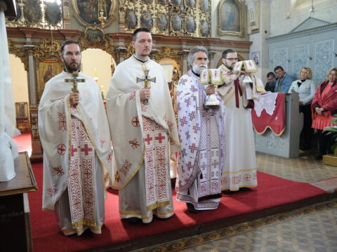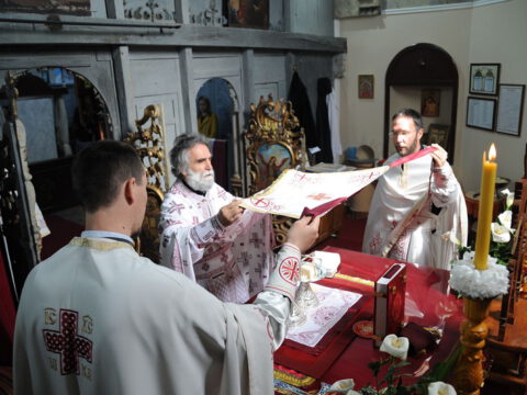 Свету Литургију служио је протојереј-ставрофор Радивој Панић, уз саслужење јереја Владимира Маркова, пароха у Каћу, јереја Даниела Кобиљског, надлежног пароха, и ђакона Јована Вачика.