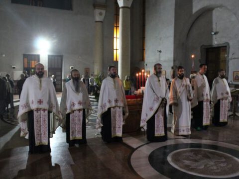 На здравље и на спасење учешће у овом свеноћном бденију и Причешће свима вама који сте се причестили Телом и Крвљу Господњом. Овим прелепим сабрањем ноћас смо отпочели „Светосавске дане”. Желим да, у име братства Светосавског храма, упутим искрену благодарност и срдачне поздраве оцу Јеротеју и оцу Велимиру, ђаконима, појцима који су на прелеп начин са нама овде заједно прославили име Светога Саве, обележили спомен на Спаљивање његових часних моштију и допринели да, у овом Дому Божјем, се помолимо Господу кроз овако прелепу молитву – молитву која све нас уздиже до небеса и дарује нам нову снагу и нову енергију да будемо ти који ћемо свагда истински служити Господу и бити на стази Његовој, на стази спасења, мира, љубави и правде Његове, казао је настојатељ храма, протојереј Бранислав Мркић.