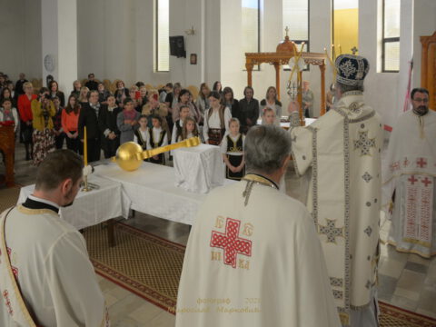После Литургије, Епископ мохачки је благословио богоугодно дело породице Дангубић и на све призвао благослов Божји, у радости Празника Христовог Васкрсења.