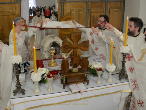 После Литургије, Епископ мохачки је благословио богоугодно дело породице Дангубић и на све призвао благослов Божји, у радости Празника Христовог Васкрсења.