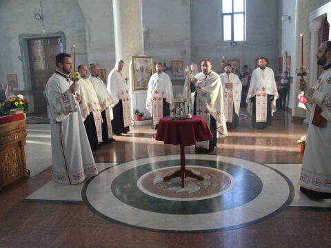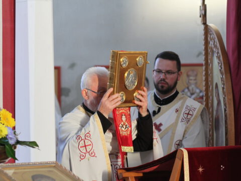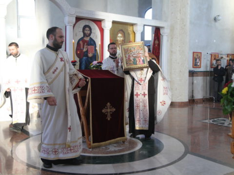 На дан празника Преноса моштију Светога Саве свету Литургију служио је Његово Преосвештенство Епископ мохачки г. Исихије, уз саслужење свештенства и ђаконства. Свечану беседу поводом славе Светосавског храма произнео је Преосвећени владика Исихије, који је навео да је мисионарски рад Светога Саве далекосежан, плодотворан и историјски непобитан, као и да је највећи допринос овог дивног угодника Божјег у томе што је он сâм своме народу остао пример живота светога архијереја, испуњен љубављу према Православној Цркви и њеном Предању.