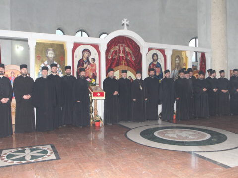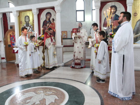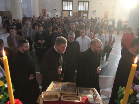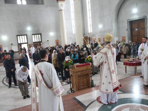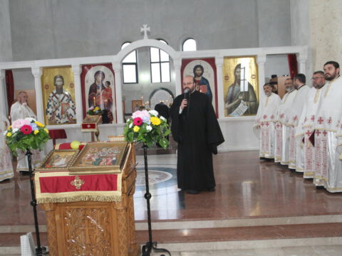 „У ове дане када славимо Васкрсење Христово, и данас када славимо Пренос моштију Његовог возљубљеног светитеља и нашег учитеља и просветитеља, великог архиепископа Саву, обратимо се његовим светим молитвама и усрдно му подражавајмо, трудећи се да његов подвиг наставимо и усавршавамо да бисмо, заједно са светитељем Савом, прославили Име Господа нашег Исуса Христа”, навео је владика Исихије.
