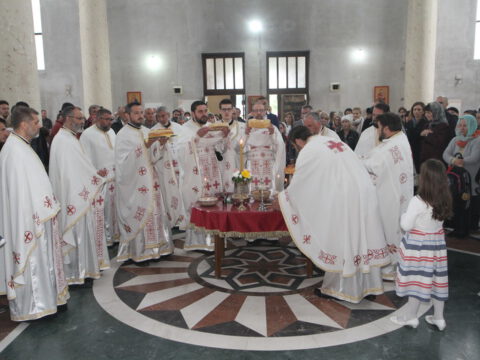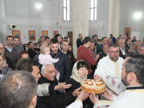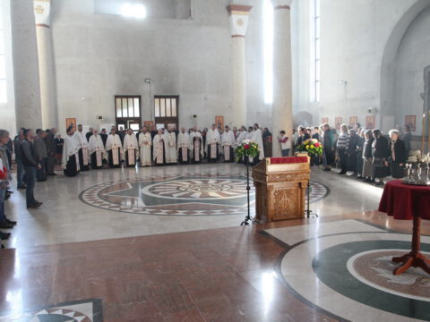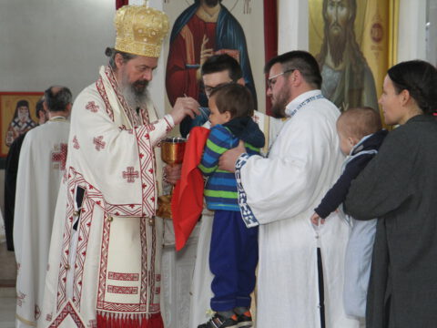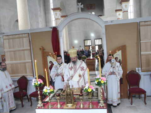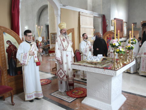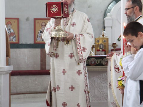 „У ове дане када славимо Васкрсење Христово, и данас када славимо Пренос моштију Његовог возљубљеног светитеља и нашег учитеља и просветитеља, великог архиепископа Саву, обратимо се његовим светим молитвама и усрдно му подражавајмо, трудећи се да његов подвиг наставимо и усавршавамо да бисмо, заједно са светитељем Савом, прославили Име Господа нашег Исуса Христа”, навео је владика Исихије.
