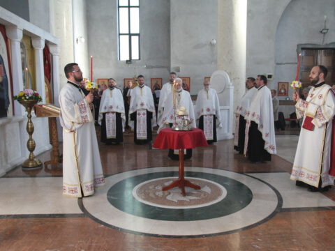 На дан празника Преноса моштију Светога Саве свету Литургију служио је Његово Преосвештенство Епископ мохачки г. Исихије, уз саслужење свештенства и ђаконства. Свечану беседу поводом славе Светосавског храма произнео је Преосвећени владика Исихије, који је навео да је мисионарски рад Светога Саве далекосежан, плодотворан и историјски непобитан, као и да је највећи допринос овог дивног угодника Божјег у томе што је он сâм своме народу остао пример живота светога архијереја, испуњен љубављу према Православној Цркви и њеном Предању.