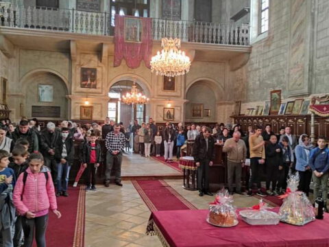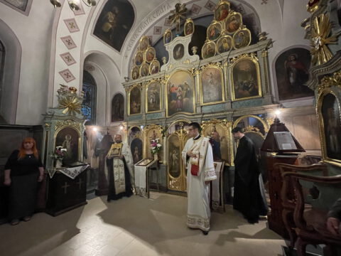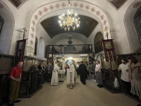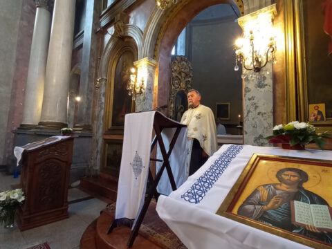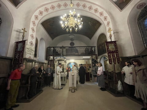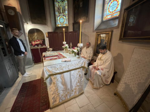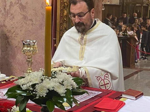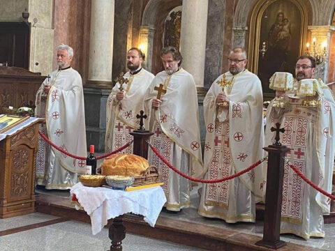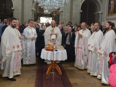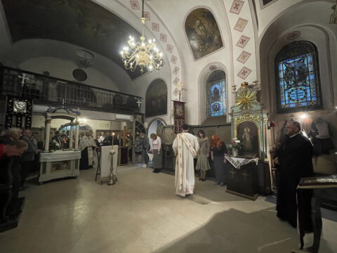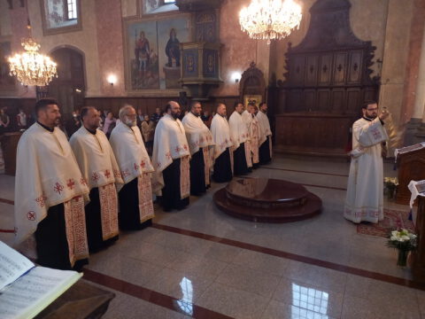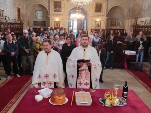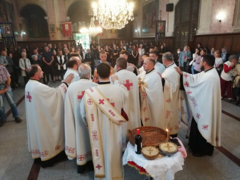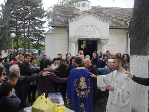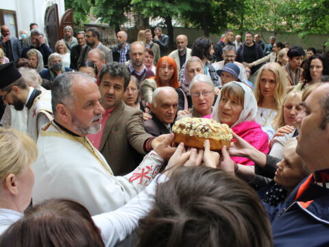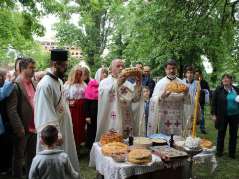 Нови Сад – У суботу, 22. маја 2021. године, парохијани Светониколајевског храма у Новом Саду, прославили су своју храмовну славу. Свету Литургију служио је протопрезвитер-ставрофор Стојан Билић, уз саслужење протопрезвитера Миодрага Андрића, настојатеља храма, и ђакона Милована Крстића. Током свете Литургије, једним устима и једним срцем, антифоно је појала певница Николајевске цркве, коју, поред појца Бранислава Момирова, чине и полазници Школе црквеног појања Свети Јован Дамаскин из Новог Сада. После литијског опхода око светог храма и благосиљања колача и кољива, присутни су наставили празнично славље за припремљеном трпезом у порти храма и парохијском дому, коју су, и ове године са љубављу, Господу у славу, а у част Светог оца Николаја, припремили парохијани ове новосадске парохије.