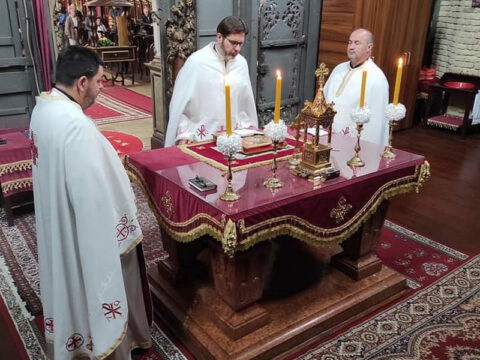 Каћ – У суботу, 9/22. маја 2021 године, житељи Каћа свечано су прославили престони празник храма Преноса моштију Светог оца Николаја. Прослављање празника отпочело је свечаним празничним бденијем, којим је началствовао протонамесник Ђорђе Стојисављевић, војни свештеник и сабрат Светосавског храма у Новом Саду, уз саслужење свештенства наше Епархије. У име присутних, отац Ђорђе је честитао храмовну славу, а протопрезвитер Александар Брашанац, сабрат храма, захвалио је свима на указаној љубави и учешћу у прослави престоног празника Светониколајевског храма.