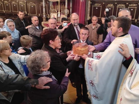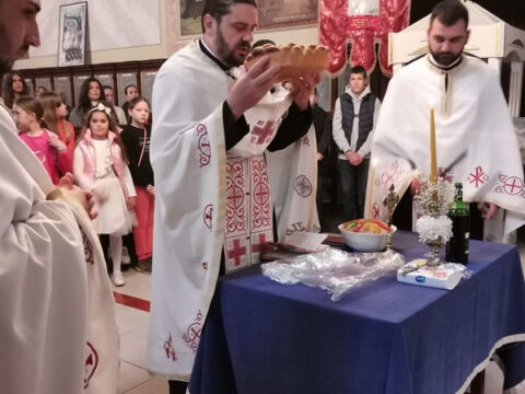 После читања Јеванђеља, протојереј Миле Мајкић произнео је беседу о радости празника и сведока у Васкрслом Христу светога Николаја Мирликијског, светитеља Божјег, светлошћу обасјаног од истока, запада, севера и југа.
