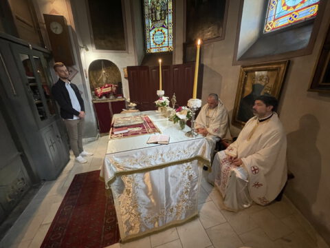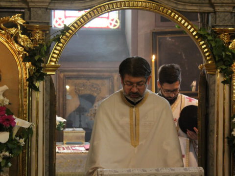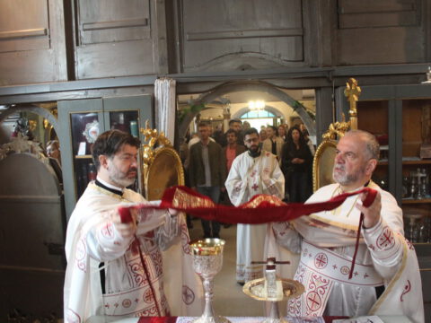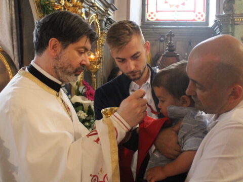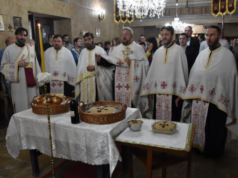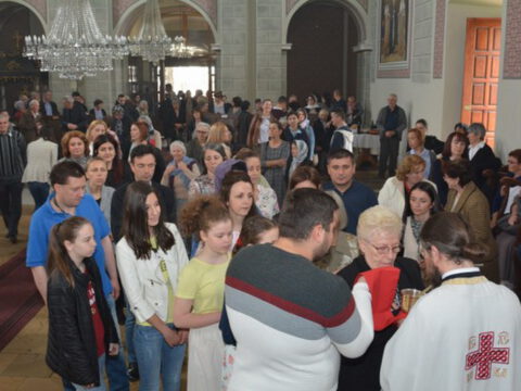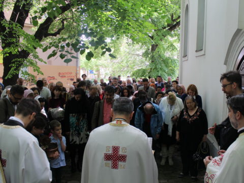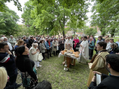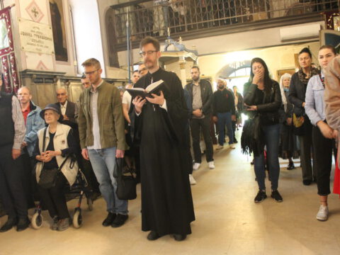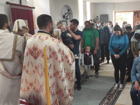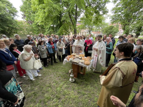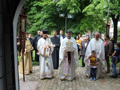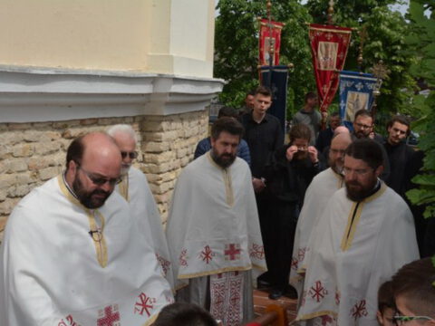 Нови Сад – У суботу, 22. маја 2021. године, парохијани Светониколајевског храма у Новом Саду, прославили су своју храмовну славу. Свету Литургију служио је протопрезвитер-ставрофор Стојан Билић, уз саслужење протопрезвитера Миодрага Андрића, настојатеља храма, и ђакона Милована Крстића. Током свете Литургије, једним устима и једним срцем, антифоно је појала певница Николајевске цркве, коју, поред појца Бранислава Момирова, чине и полазници Школе црквеног појања Свети Јован Дамаскин из Новог Сада. После литијског опхода око светог храма и благосиљања колача и кољива, присутни су наставили празнично славље за припремљеном трпезом у порти храма и парохијском дому, коју су, и ове године са љубављу, Господу у славу, а у част Светог оца Николаја, припремили парохијани ове новосадске парохије.