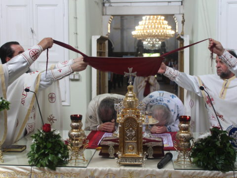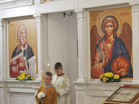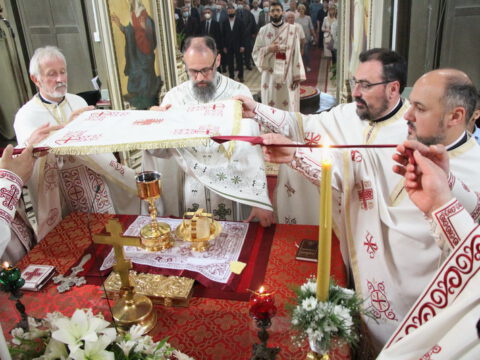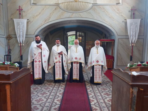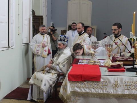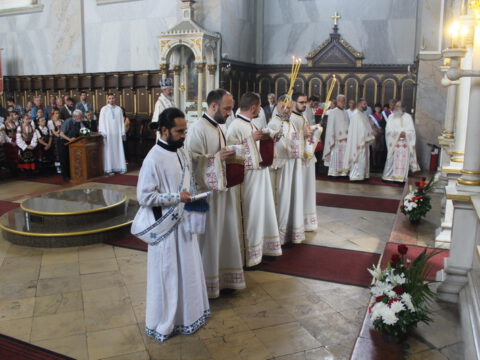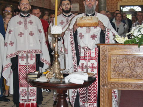 У току свете Литургије, владика Иринеј је рукоположио ђакона Бранка Милосављева у чин презвитера, а владика Исихије је рукоположио ипођакона Бранка Батала у чин ђакона.