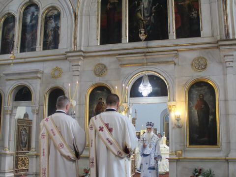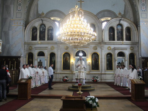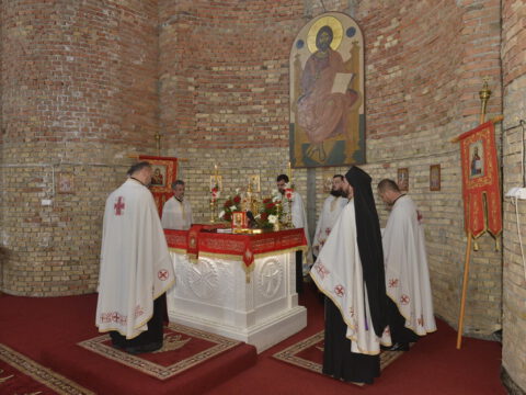 У четвртак шесте седмице по Пасхи, 28. маја/10. јуна 2021. године, на светој архијерејској Литургији началствовао је Његово Преосвештенство Епископ бачки г. Иринеј, а саслуживали су Његово Преосвештенство Епископ мохачки г. Исихије – новоизабрани Владика ваљевски, јеромонах Јеротеј, новоизабрани Епископ топлички, свештеници и ђакони Епархије бачке.