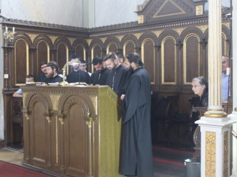 За певницом су певали протојереј-ставрофор Славко Пајовић, катихета Димитрије Крнета и студент на Православном богословском факултету Зоран Милић.