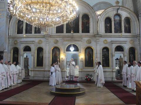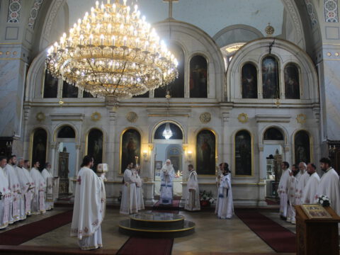 Нови Сад – На празник Вазнесења Господњег мноштво вернога народа Новога Сада сабрало се 28. маја/10. јуна 2021. године у Световазнесењском храму на Клиси. На светој Литургији началствовао је протопрезвитер-ставрофор Ђорђе Ђурђев, настојатељ Саборног храма у Новом Саду, а саслуживали су свештеници Епархије бачке.