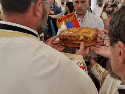 Речи захвалности упутио је старешина Световазнесењског храма, протопрезвитер Драган Стокин. Кум славе залог славског колача за наредну годину предао је породици Ранков.