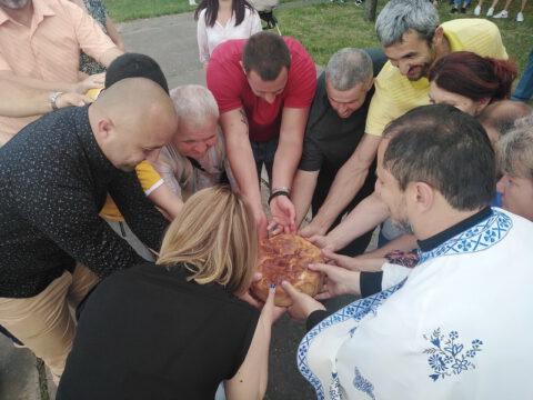 После чина освећења славског кољива и резања славског колача, за новог кума се јавио господин Немања Летић са породицом. Ове године кум је био господин Радомир Банда.
