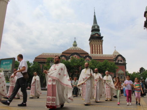 После заамвоне молитве, у опходу око храма освештано је класје жита и одржана је литија, која је пронела радост празника суботичким улицама и главним суботичким тргом.