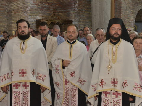 Настављајући прославу храмовне славе у Суботици, у Световазнесењском храму служено је вечерње богослужење, којим је началствовао отац Миодраг, уз саслужење протопрезвитера Миладина Бокорца, архијерејског намесника жабаљског, и свештенства наше Епархије.