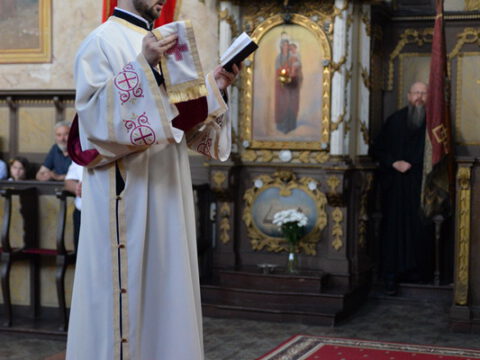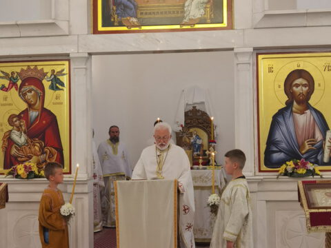 У току свете Литургије, владика Иринеј је рукоположио ђакона Бранка Милосављева у чин презвитера, а владика Исихије је рукоположио ипођакона Бранка Батала у чин ђакона.