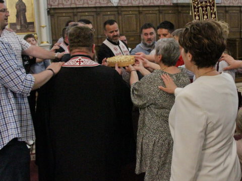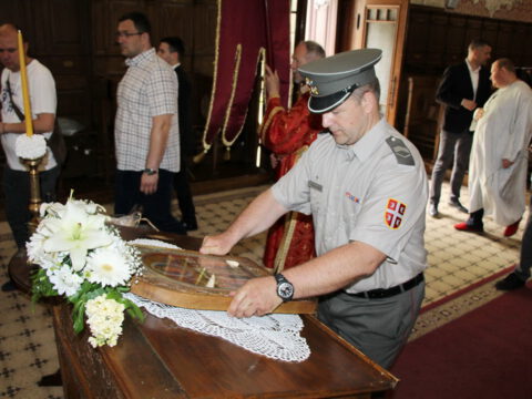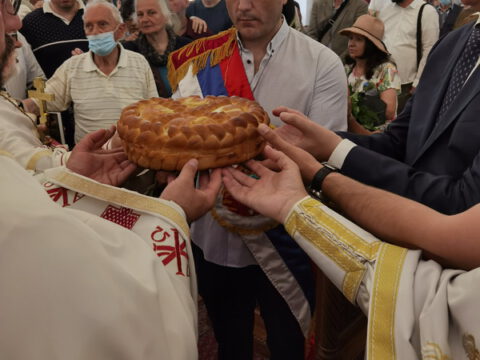 Речи захвалности упутио је старешина Световазнесењског храма, протопрезвитер Драган Стокин. Кум славе залог славског колача за наредну годину предао је породици Ранков.