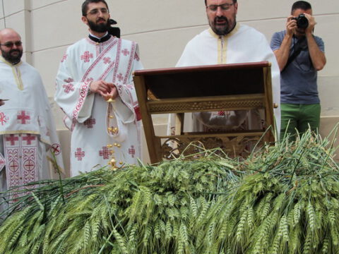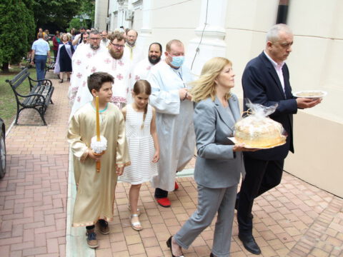 После заамвоне молитве, у опходу око храма освештано је класје жита и одржана је литија, која је пронела радост празника суботичким улицама и главним суботичким тргом.