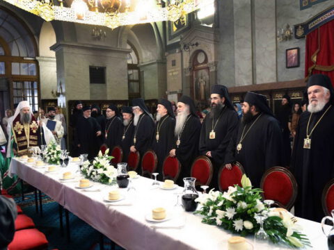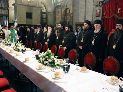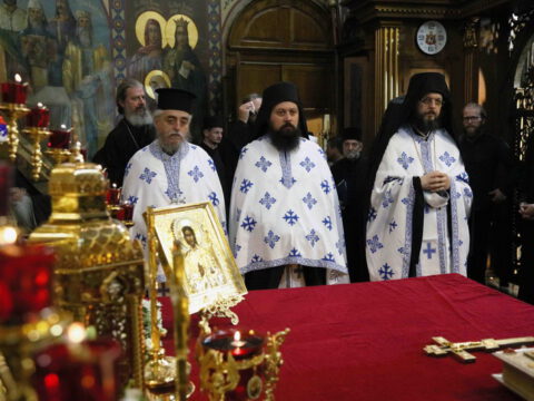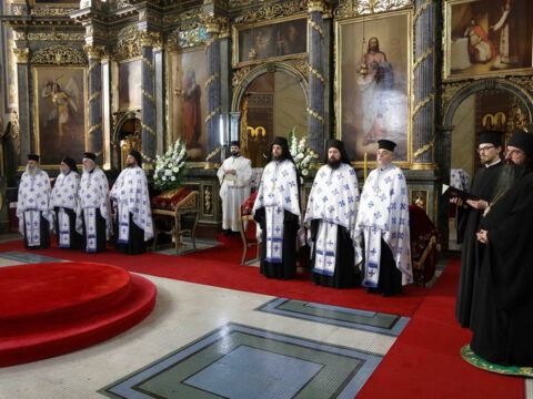 Свечаном чину је началстововао Његова Светост Патријарх српски г. Порфирије, у молитвеном присуству Блажењејшег Архиепископа охридског и Митрополита скопског г. Јована и преосвећене господе архијереја: шабачког Лаврентија, будимског Лукијана, банатског Никанора, бачкoг Иринеја, британско-скандинавског Доситеја, врањског Пахомија, шумадијског Јована, зворничко-тузланског Фотија, милешевског Атанасија, рашко-призренског Теодосија, крушевачког Давида, тимочког Илариона, нишког Арсенија, аустралијско-новозеландског Силуана, осечкопољског и барањског Херувима, ваљевског Исихија, ремезијанског Стефана, стобијског Давида и умировљеног канадског Георгија.