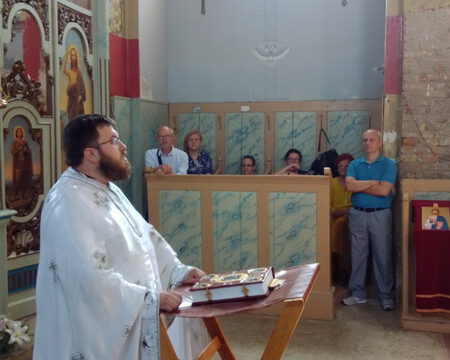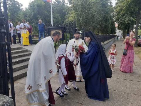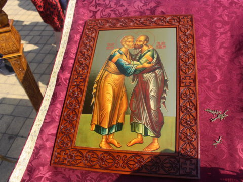 После свете Литургије, прота Бранко је, честитајући празник, беседио о светим првоврховним апостолима Петру и Павлу и о лепоти близине Божје којом су они били надахнути у својој апостолској служби, а којом и ми треба свакодневно да се надахњујемо као чланови Цркве: „То је лепота која нема алтернативе – лепота Божја, лепота близине Божје. Она је била инспирација и светим апостолима Петру и Павлу. Да се том лепотом очаравамо и нећемо се разочарати. Та лепота близине Божје нас је и сабрала данас овде да се сви заједно помолимо, да пред овом светињом овде служимо свету Литургију, да се причестимо и да се радујемо”, нагласио је прота Бранко.