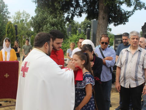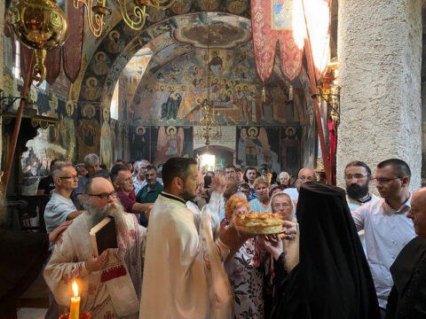 После трикратног литијског опхода и помена ктиторима и свештенослужитељима светога храма, извршено је освећење славских дарова – кољива и колача, које је принео овогодишњи кум, г. Ненад Ђурђевић из Бачког Брестовца са својом породицом. Кумство за следећу годину преузео је Ненад Ђурђевић, унук овогодишњега кума.
