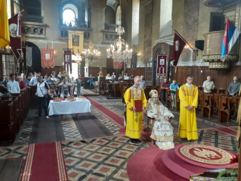 Нови Сад – Његово Преосвештенство Епископ новосадски и бачки г. Иринеј началствовао је, на празник Светих апостола Петра и Павла, у понедељак, 29. јуна/12. јула 2021. године, на светој архијерејској Литургији у Саборном храму у Новом Саду. Преосвећеном владици Иринеју су саслуживали свештеници Саборног храма и новосадски ђакони.