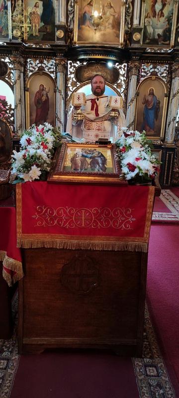 На Петровдан, јутрењем и светом Литургијом началствовао је прота Бранко, уз саслужење протопрезвитера Владана Симића, протопрезвитера Бране Миловца и протопрезвитера Жељка Тешића, настојатеља храма Светих бесребреника Козме и Дамјана у Футогу. По отпусту свете Литургије, освештани су славски дарови, које је принео овогодишњи кум, г. Немања Негру са породицом.