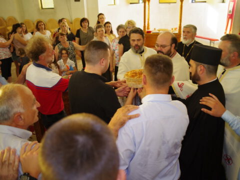 После свете Литургије, прота Бранко је, честитајући празник, беседио о светим првоврховним апостолима Петру и Павлу и о лепоти близине Божје којом су они били надахнути у својој апостолској служби, а којом и ми треба свакодневно да се надахњујемо као чланови Цркве: „То је лепота која нема алтернативе – лепота Божја, лепота близине Божје. Она је била инспирација и светим апостолима Петру и Павлу. Да се том лепотом очаравамо и нећемо се разочарати. Та лепота близине Божје нас је и сабрала данас овде да се сви заједно помолимо, да пред овом светињом овде служимо свету Литургију, да се причестимо и да се радујемо”, нагласио је прота Бранко.