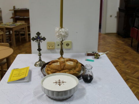 У присуству верног народа, чланова библиотеке, библиотекара Јована Мајсторовића, катихете, чин благосиљања славских дарова извршио је протопрезвитер Душан Ђукић, архијерејски намесник суботички, уз саслужење презвитера Илије Анђелића, пароха суботичког, презвитера Вељка Васиљева, пароха палићког, и ђакона Лазара Ђачића.
