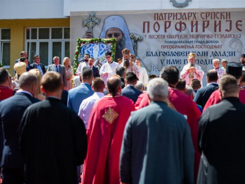 По освештању Патријарх Порфирије је благословио сав окупљени верни народ те произнео свечану беседу у којој је, између осталог, истакао да смо сви радосни што славимо Преображење Господње и да нема већег повода да се окупимо, јер је само Преображење слава Божја и слава сваког човека. У том празнику је много садржаја и смисла за наше постојања, али пре свега остваривање Божје воље.