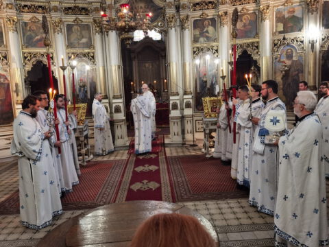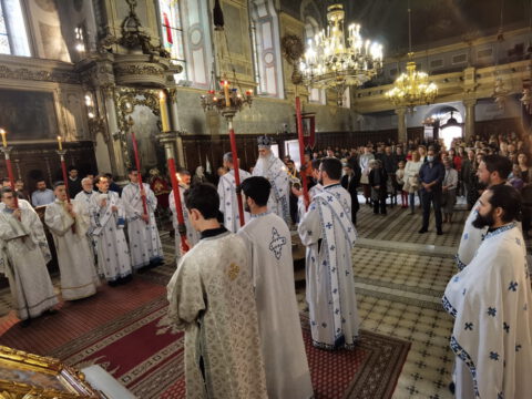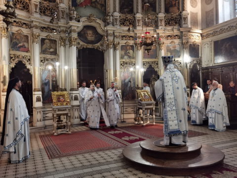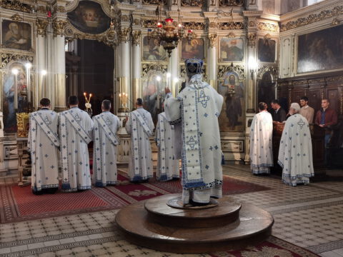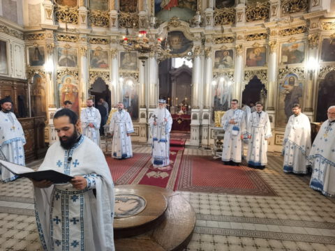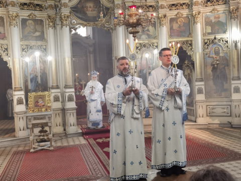 Његово Преосвештенство Епископ бачки г. Иринеј началствовао је на празник Успења Пресвете Богородице, у суботу, 15/28. августа 2021. године, на светој архијерејској Литургији у Саборном храму у Новом Саду. Преосвећеном владици Иринеју су саслуживали свештеници и ђакони Епархије бачке.