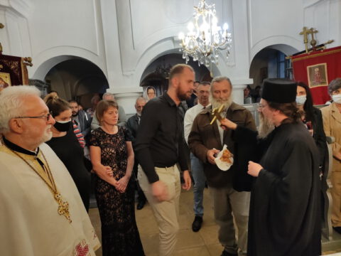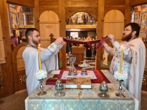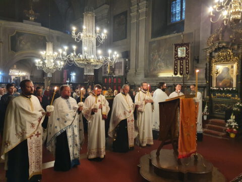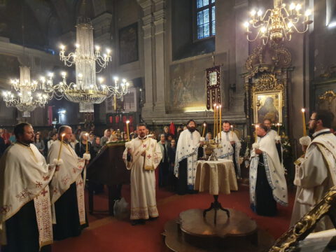 Саборни храм у Новом Саду – Његово Преосвештенство Епископ бачки г. Иринеј началствовао је на празник Успења Пресвете Богородице, у суботу, 15/28. августа 2021. године, на светој архијерејској Литургији у Саборном храму у Новом Саду. Преосвећеном владици Иринеју су саслуживали свештеници и ђакони Епархије бачке.