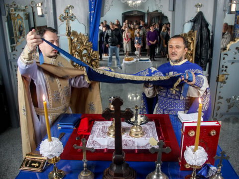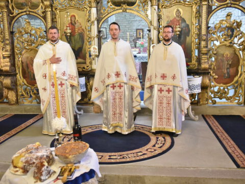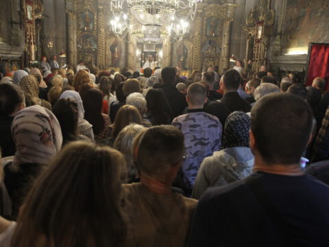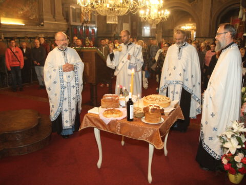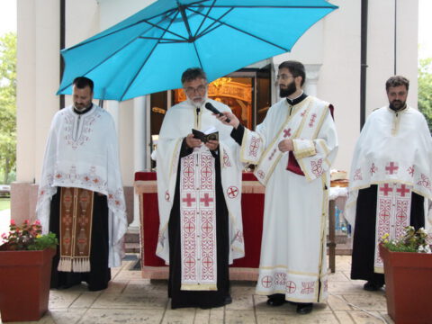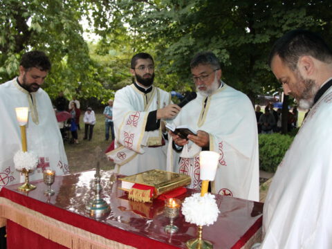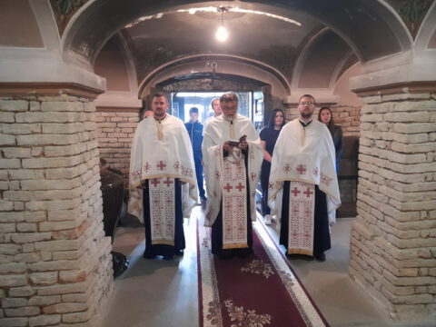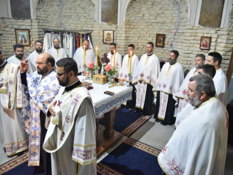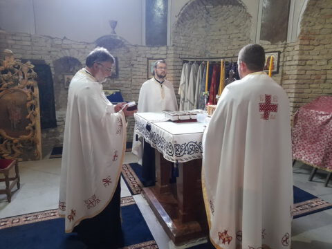 Сомбор – Уочи празника Успења Пресвете Богородице, празнично бденије на Великом православним гробљу у Сомбору служио је протонамесник Срђан Нешић, уз саслужење ђакона Александра Верића.