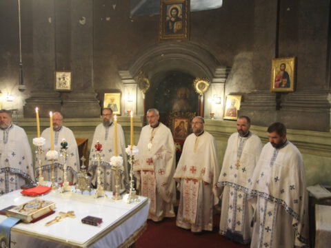 На вечерњем богослужењу началствовао је протојереј Бранислав Мркић, архијерејски намесник новосадски други, уз саслужење многобројног свештенства и ђаконства Епархије бачке.