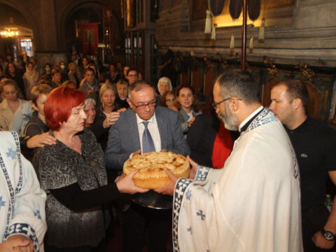 Прота Радован је, после отпуста, честитао славу свештенству и парохијанима Успенске цркве, а прота Жељко Латиновић, старешина Успенског храма, честитао је празник присутнима и призвао благослов Пресвете Богородице на род људски, пожелевши да све људе Богомајка увек води путем спасења ка Сину Свом, у Царство небеско.