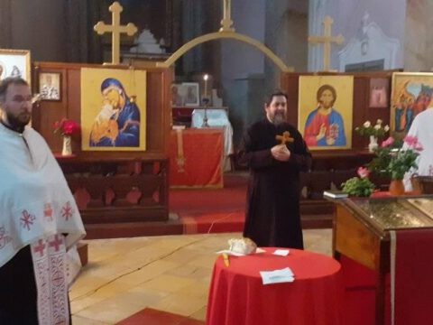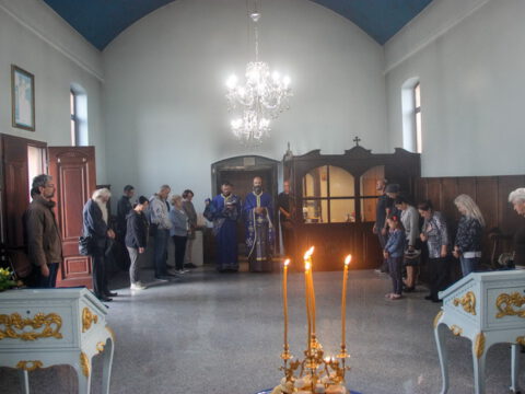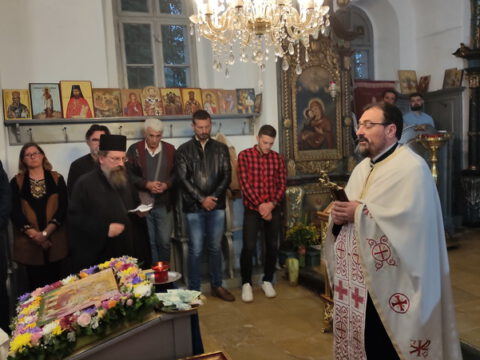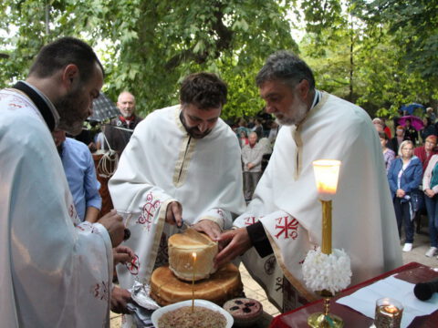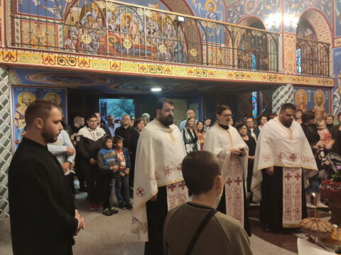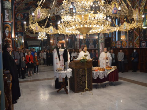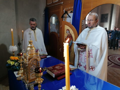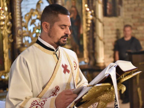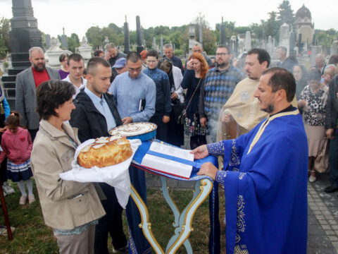 Сомбор – Уочи празника Успења Пресвете Богородице, празнично бденије на Великом православним гробљу у Сомбору служио је протонамесник Срђан Нешић, уз саслужење ђакона Александра Верића.