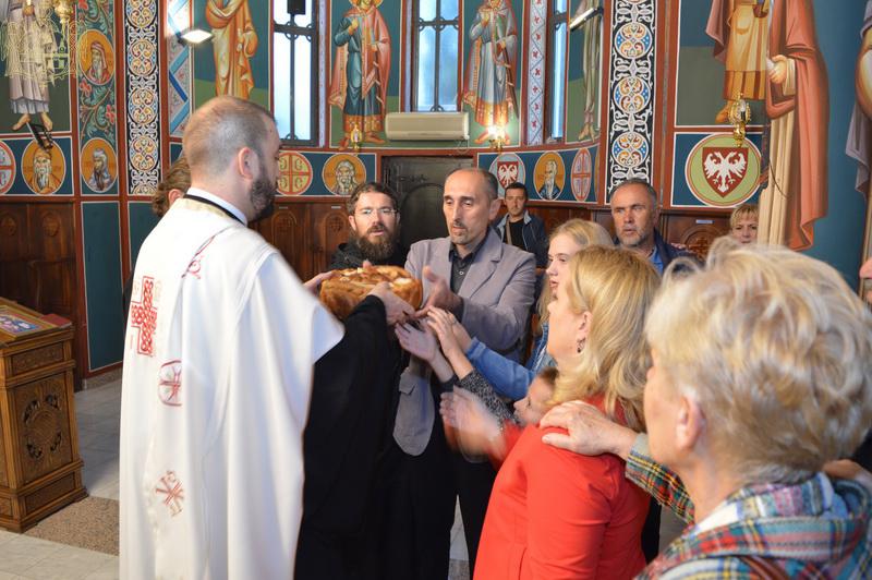 Прота Радован је, после отпуста, честитао славу свештенству и парохијанима Успенске цркве, а прота Жељко Латиновић, старешина Успенског храма, честитао је празник присутнима и призвао благослов Пресвете Богородице на род људски, пожелевши да све људе Богомајка увек води путем спасења ка Сину Свом, у Царство небеско.