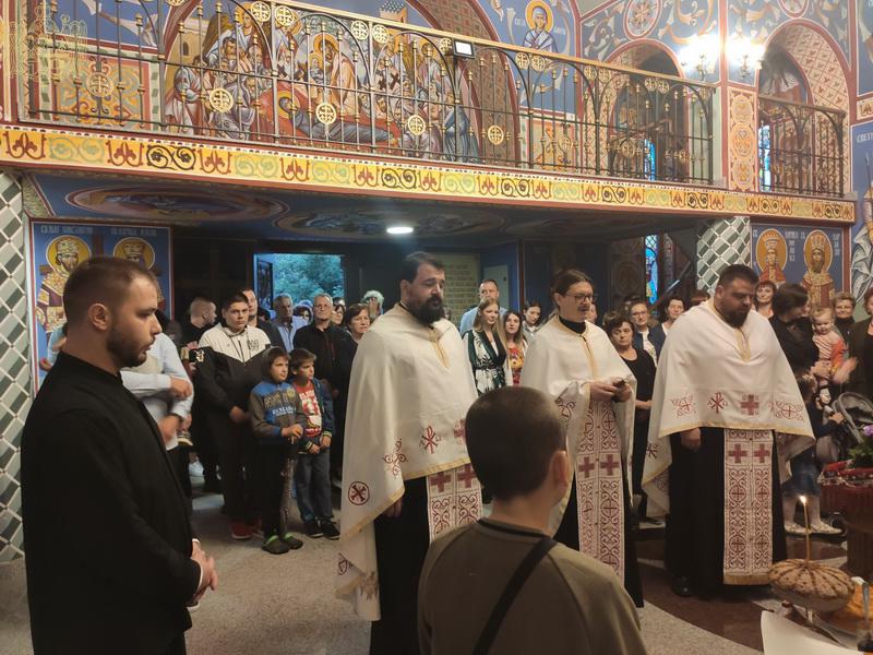 На дан храмовне славе, на Великом православном гробљу светом Литургијом је началствовао протонамесник Бранислав Шијачић, уз саслужење јереја Вељка Пејовића, свештеника из Америке.