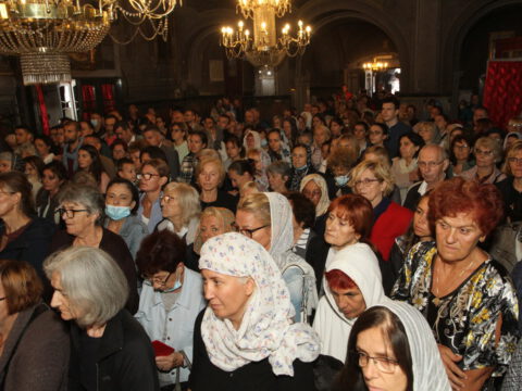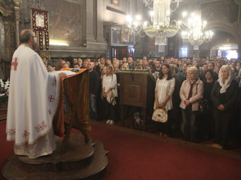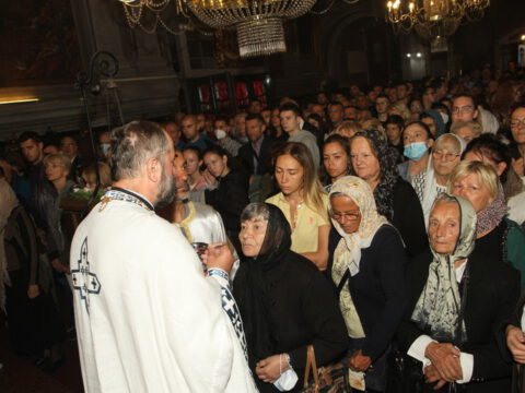 Саборни храм у Новом Саду – Његово Преосвештенство Епископ бачки г. Иринеј началствовао је на празник Успења Пресвете Богородице, у суботу, 15/28. августа 2021. године, на светој архијерејској Литургији у Саборном храму у Новом Саду. Преосвећеном владици Иринеју су саслуживали свештеници и ђакони Епархије бачке.