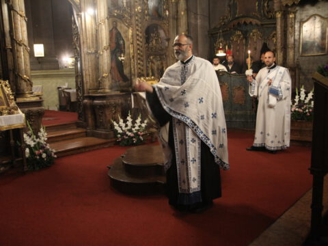 На вечерњем богослужењу началствовао је протојереј Бранислав Мркић, архијерејски намесник новосадски други, уз саслужење многобројног свештенства и ђаконства Епархије бачке.