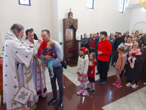 Првој светој Литургији, коју је у нововаљевском храму служио Епископ Исихије присуствовало је мноштво верног народа. Неки од њих, углавном они најмлађи, су приступили светој Тајни Причешћа.