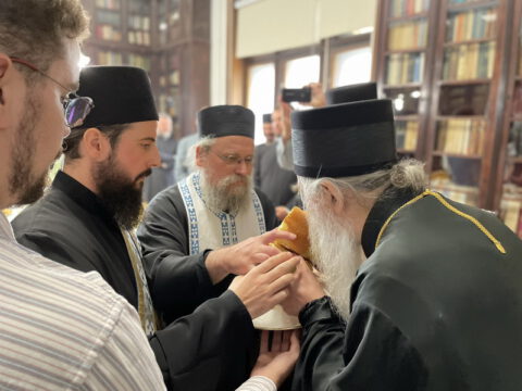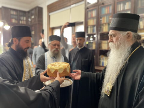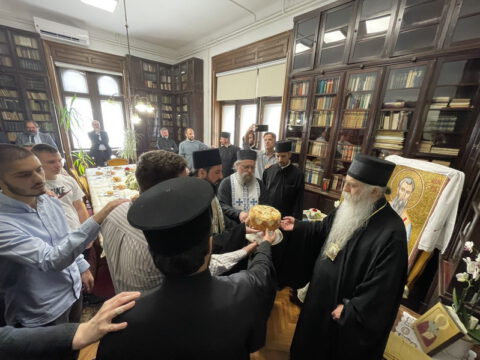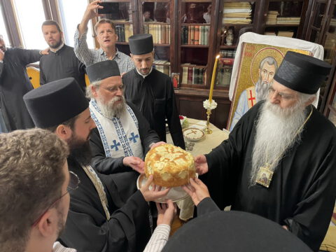 После свете Литургије, у Владичанском двору у Новом Саду освештани су славски дарови у част светог свештеномученика Иринеја Лионског. Чин благосиљања славских дарова извршио је јеромонах Харитон, уз саслужење јерођакона Јустина. Свечаном чину присуствовали су уважени гости и најближи сарадници Преосвећеног владике Иринеја.